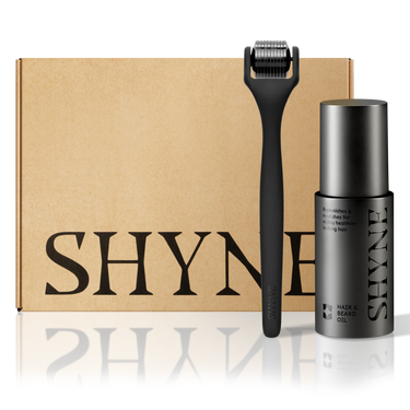 This duo pairs the SHYNE Derma Roller with our nourishing Hair & Beard Oil to help stimulate the scalp and beard area, improve oil absorption, and support stronger, fuller-looking hair over time.